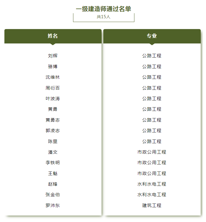 15人取得一级建造师执业资格