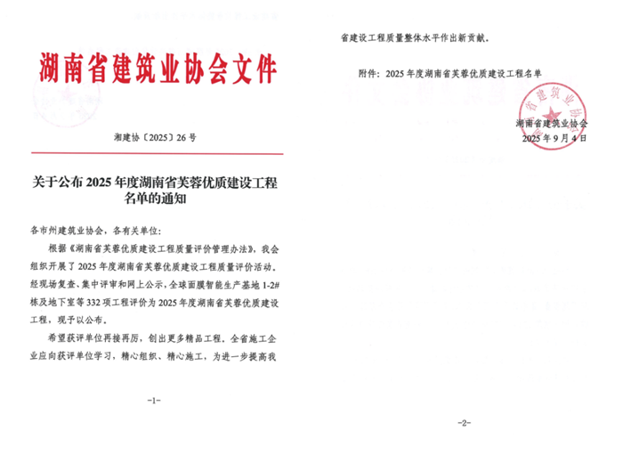 2025年度湖南省芙蓉优质建设工程评选结果揭晓