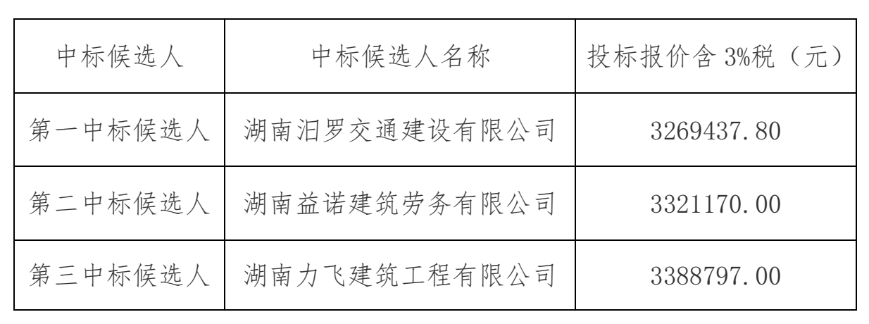 招标公示|G536汨罗市蔡屋章至龙塘段路面工程施工劳务分包工程中标候选人公示